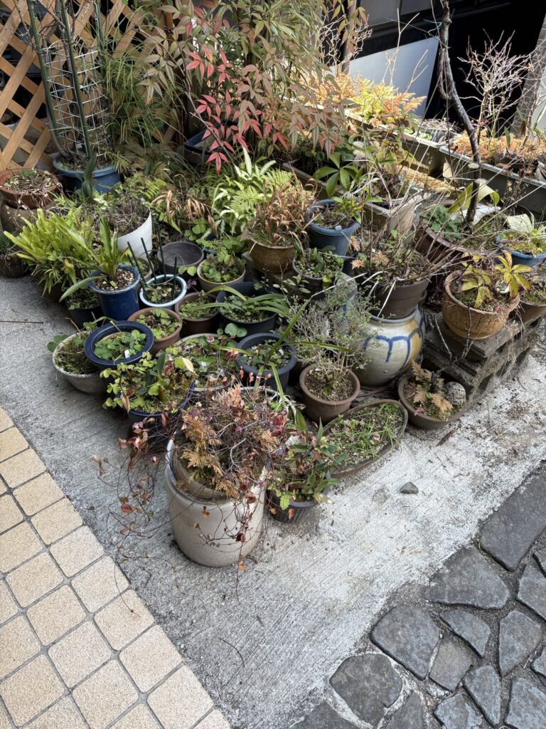 お庭に置かれた沢山の鉢植えを回収しました。